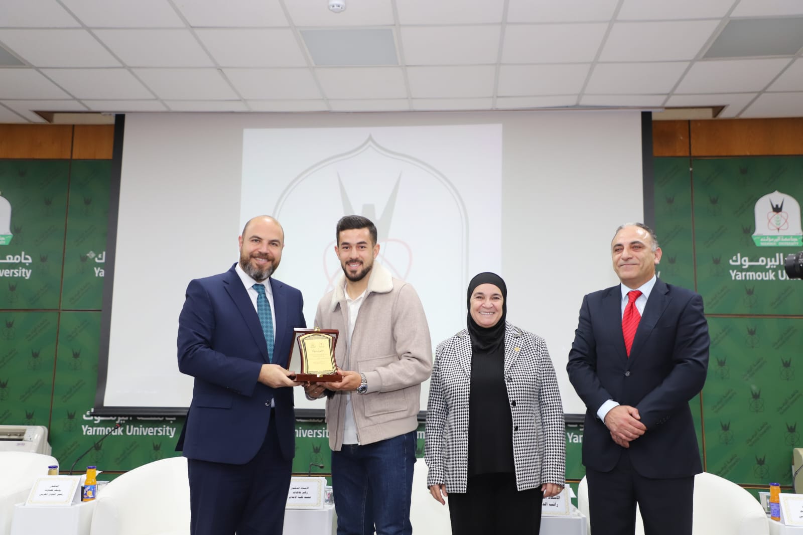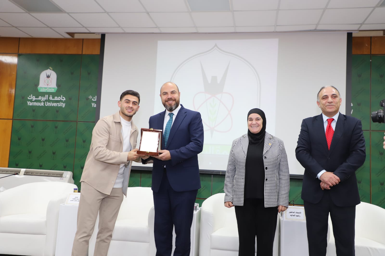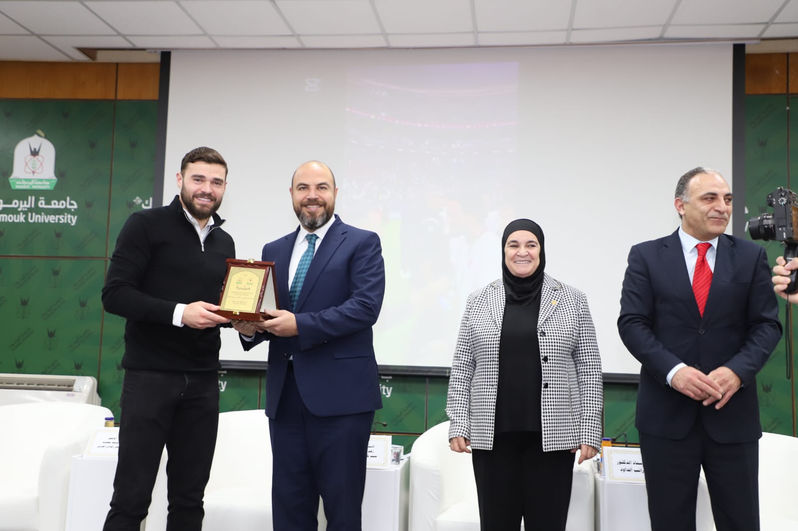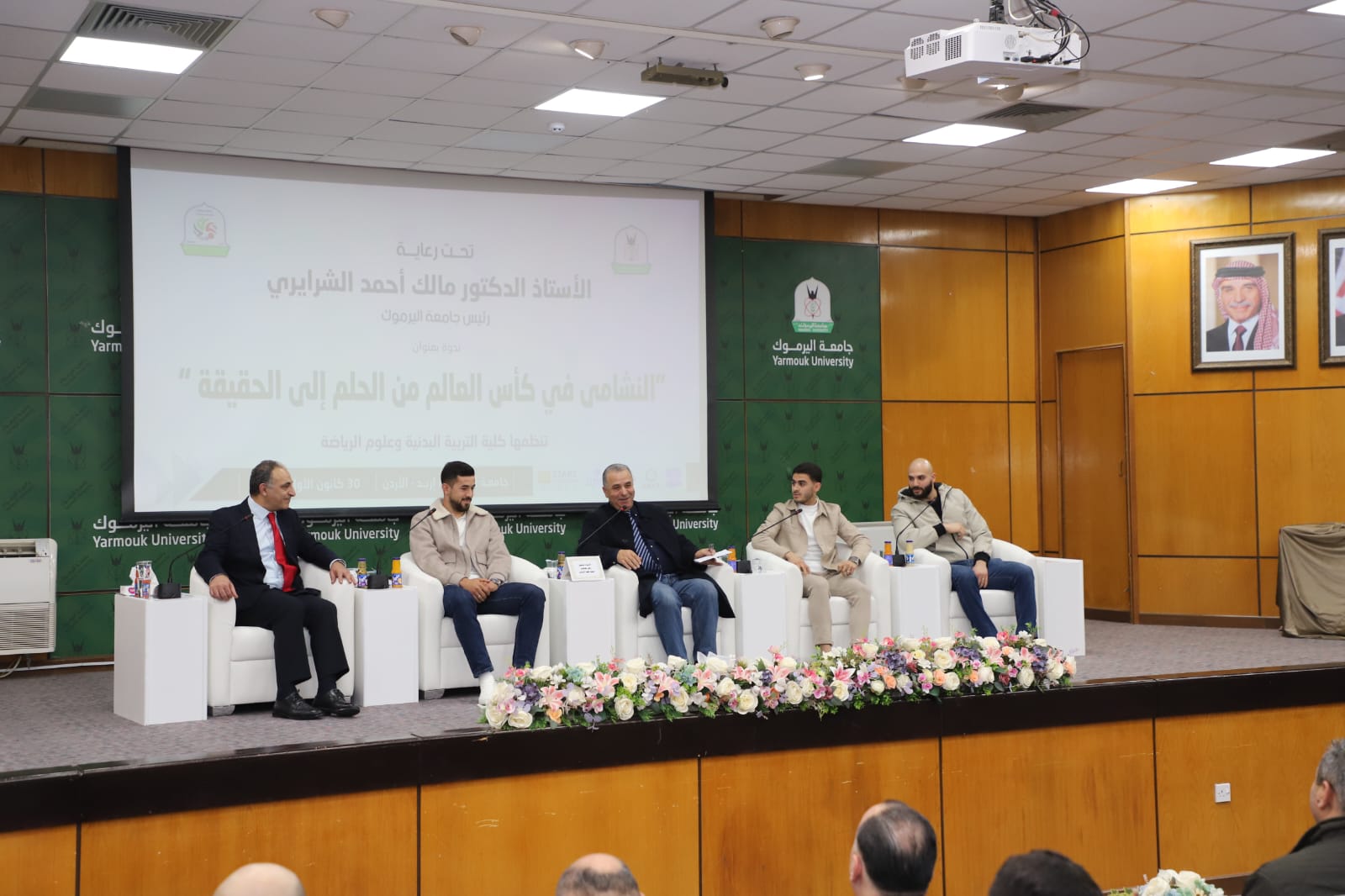 رعى رئيس جامعة اليرموك الأستاذ الدكتور مالك الشرايري، الندوة الحوارية الرياضية التي نظمتها كلية التربية البدنية وعلوم الرياضة، بعنوان "النشامى في كأس العالم.. من الحلم إلى الحقيقة"، احتفاءً بالإنجاز التاريخي لمنتخبنا الوطني لكرة القدم وتأهله إلى نهائيات كأس العالم 2026، بحضور نجوم المنتخب من خريجي الكلية الكابتن سعد الروسان والكابتن محمد راتب الداود والكابتن محمد أبو زريق "شرارة"، ونجم المنتخب الوطني سابقا ولاعب فريق الرمثا مصعب اللحام، و الكابتن هايل ذيابات، والمعالج الطبي للمنتخب عمر حداد.