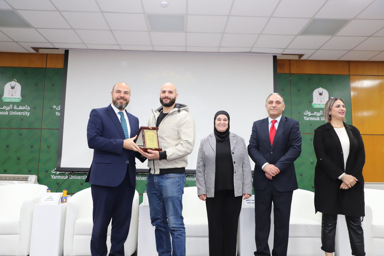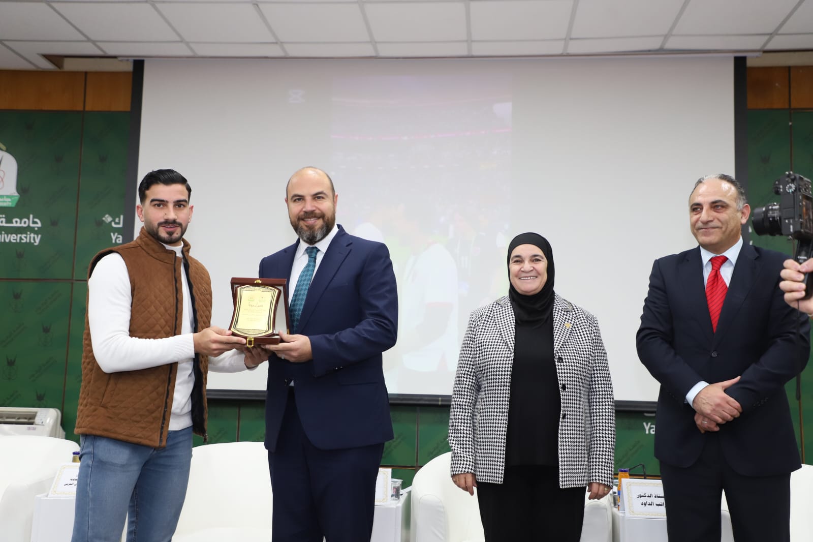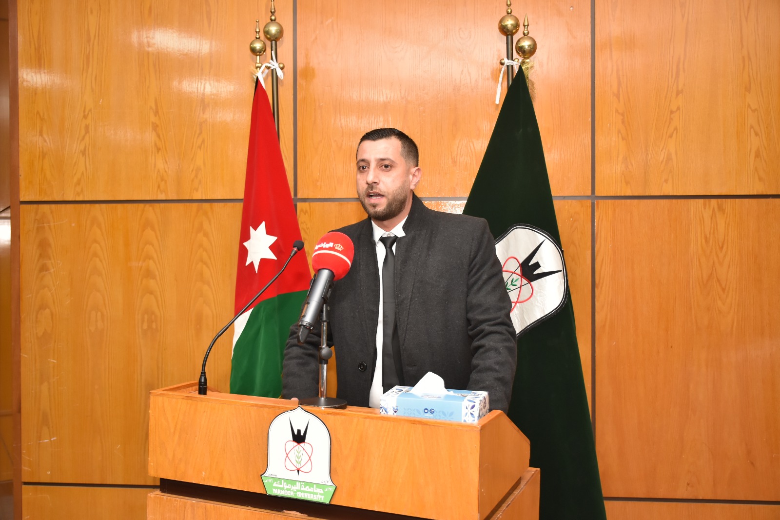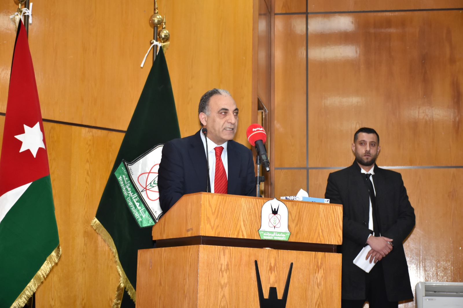 رعى رئيس جامعة اليرموك الأستاذ الدكتور مالك الشرايري، الندوة الحوارية الرياضية التي نظمتها كلية التربية البدنية وعلوم الرياضة، بعنوان "النشامى في كأس العالم.. من الحلم إلى الحقيقة"، احتفاءً بالإنجاز التاريخي لمنتخبنا الوطني لكرة القدم وتأهله إلى نهائيات كأس العالم 2026، بحضور نجوم المنتخب من خريجي الكلية الكابتن سعد الروسان والكابتن محمد راتب الداود والكابتن محمد أبو زريق "شرارة"، ونجم المنتخب الوطني سابقا ولاعب فريق الرمثا مصعب اللحام، و الكابتن هايل ذيابات، والمعالج الطبي للمنتخب عمر حداد.